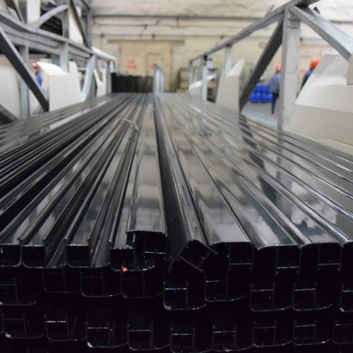 El Lacado es un proceso de naturaleza electrostática que consiste en cubrir la superficie del aluminio de los perfiles con resinas de poliéster en polvo, con resistencias químicas y mecánicas.